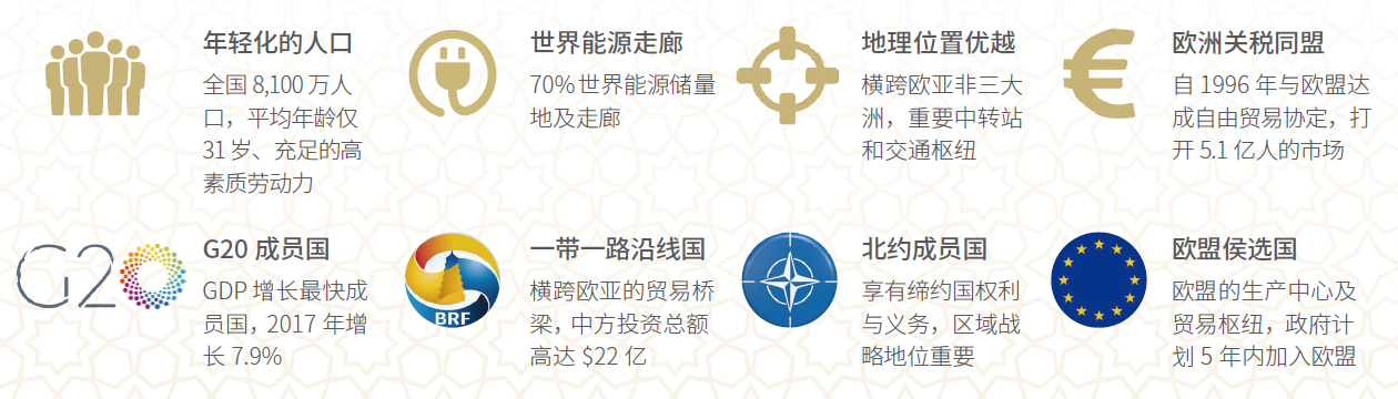 2017年,土耳其以7.4%的GDP增速位列所有G20国家之首,被称为“崛起的欧亚门户”。