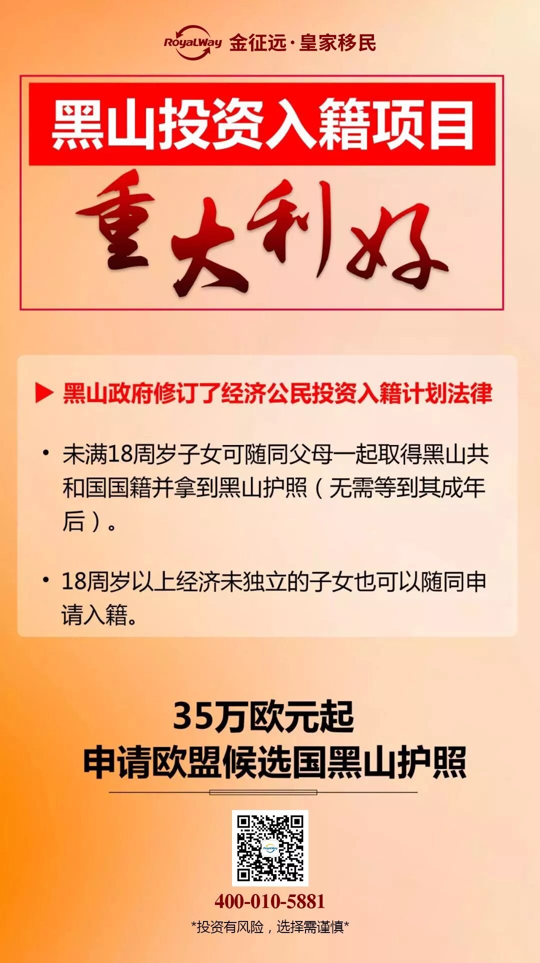 近日,黑山政府修订了经济公民投资入籍计划法律,未满18周岁子女可随同父母一起取得黑山共和国国籍并拿到黑山护照(无需等到其成年后)。这对广大投资申请人来说,无疑是重磅利好消息。