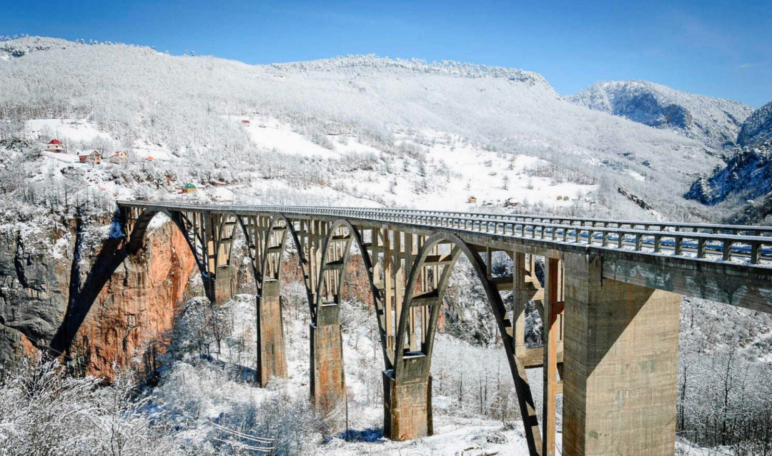 塔拉河大桥建于1937年至1940年间,是当时欧洲最大的车混凝土拱桥,桥面与峡谷最低点的落差高达172米,横跨塔拉峡谷。该桥位于杜米托尔国家公园内,是前南斯拉夫电影《桥》取景地,可以在周边餐厅欣赏风景,同时品尝黑山美酒佳肴。