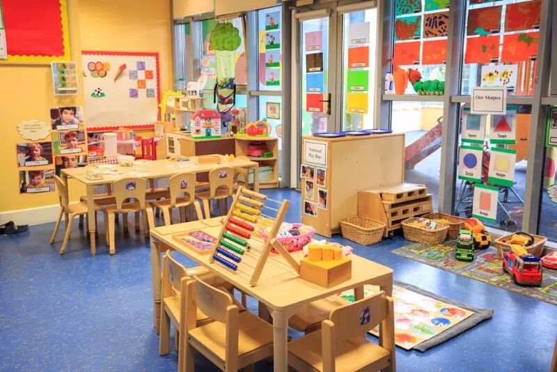 爱尔兰的幼儿园又叫Creche,孩子6个月大就可以送去,一直到6岁。每个年龄段的小孩会被安排在不同的房间,接受不同种类的看护:6个月到1岁,一般在婴儿房,一个老师照看三个小朋友。这都是有法律规定的比例: