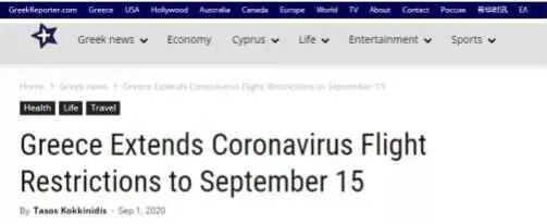 据报道,希腊民航局新的指令截至日期为9月15日23时59分。