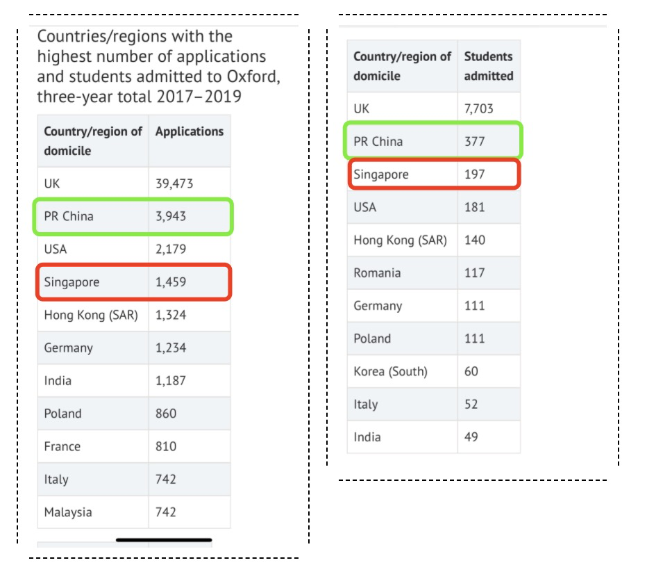 咱们来看下证据,看一下像牛津大学、剑桥大学这些世界名校是怎么“实锤偏爱”新加坡就读学生的!