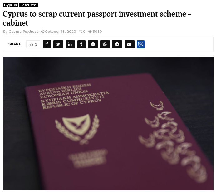 当地时间10月13日,据塞浦路斯邮报消息,塞浦路斯将废除目前的护照投资项目。