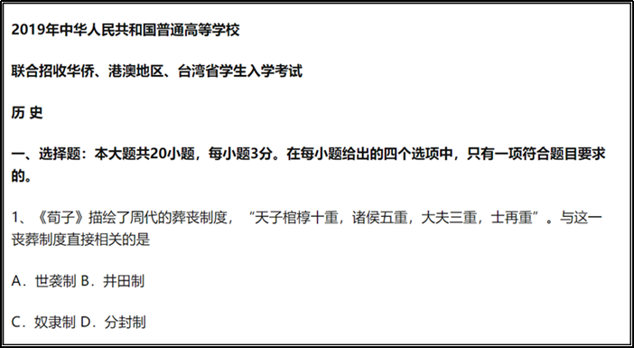 明确题型题量。选择题共20题,分值60分。材料分析题共2题,分值30分。问答题共3题,考生可任意选做其中2题,分值60分。