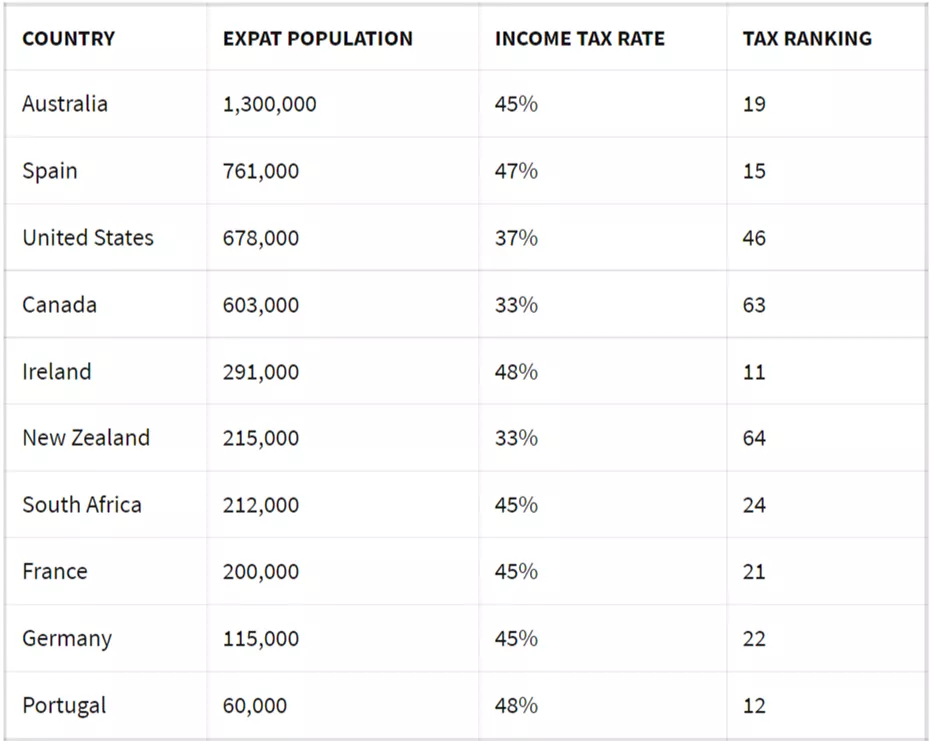 可以看出,这些目的地的税率都在 33% 或者更高。