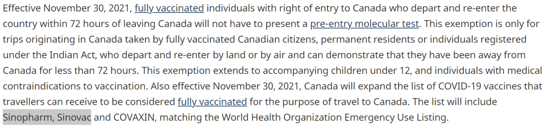 从2021年11月30日起,加拿大将扩大旅行者可接受的COVID-19疫苗清单,考虑为前往加拿大的目的接种全面疫苗。该名单内将包括国药、科兴这两只中国疫苗!加拿大官方认可疫苗list接下来也将与世界卫生组织紧急用途清单相匹配。
