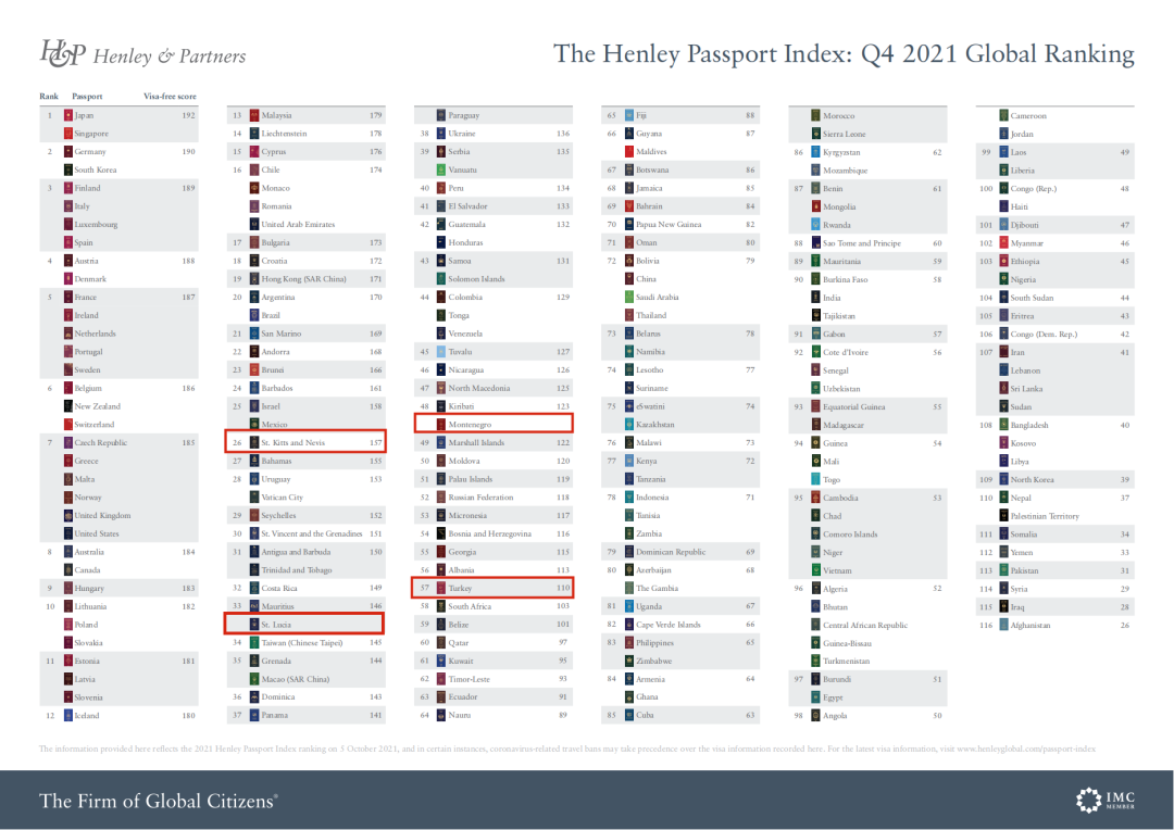 H&P发布2021年Q4护照排名,身份多元化成为后疫情时代必要条件!