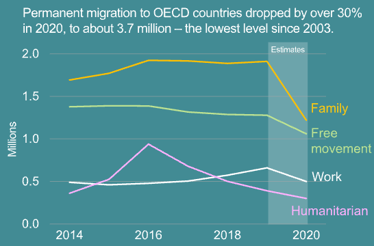 OECD在报告中表示,过去一年中几乎所有国家和类别的移民都出现了下降。