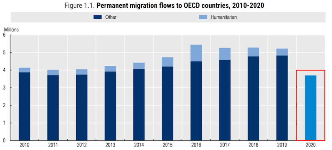根据世界经济合作组织(OECD)的《2021年度移民报告》显示: