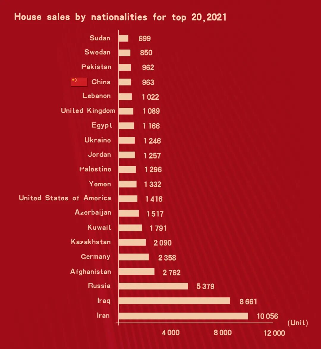 2021年,中国投资者从土耳其购置963套房产,排名第17位,伊斯坦布尔逐渐成为备受中国投资人青睐的海外房产投资首选地。