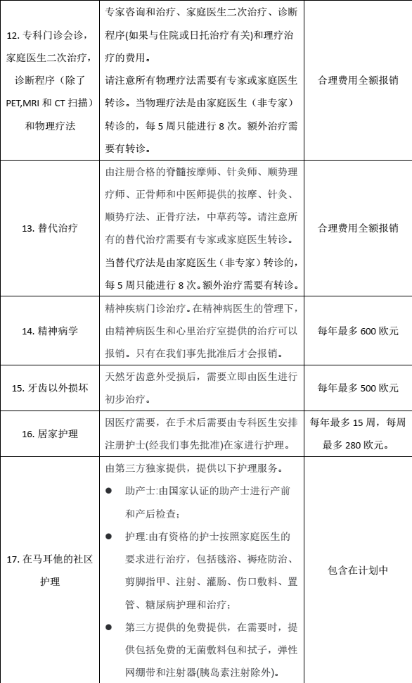 以Atlas保险为例,年度报销额度15万欧元,理赔范围从住院治疗到外科手术、从专家问诊到肿瘤放射,涵盖范围非常之广。另外该保险适用于欧盟经济区、申根和欧盟、英国,即使您在马耳他境外就医,理赔范围内的就医花销也无后顾之忧。