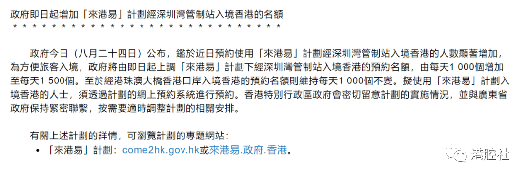 至于经港珠澳大桥香港口岸入境香港的预约名额则维持每天1000个不变。
