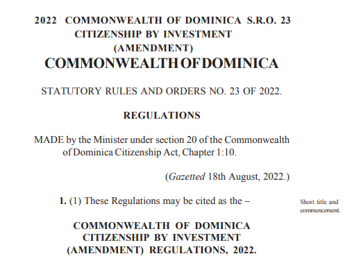 在加勒比各国与美国和欧盟举行了谈判会议后,近期多米尼克政府发布新政策,《2022年多米尼克国投资入籍(修正)条例》已于2022年8月18日公示,并将于2022年9月15日生效。 新法案对投资入籍公民计划进行了重大调整!