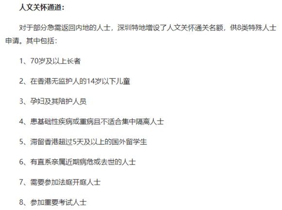 一是直接前往深圳,在深圳的健康驿站隔离,采取“摇号”的方式,可预约7天的号。若摇号一直未能中签,可申请“深圳人文关怀通道”,也有一定概率可成功通关。