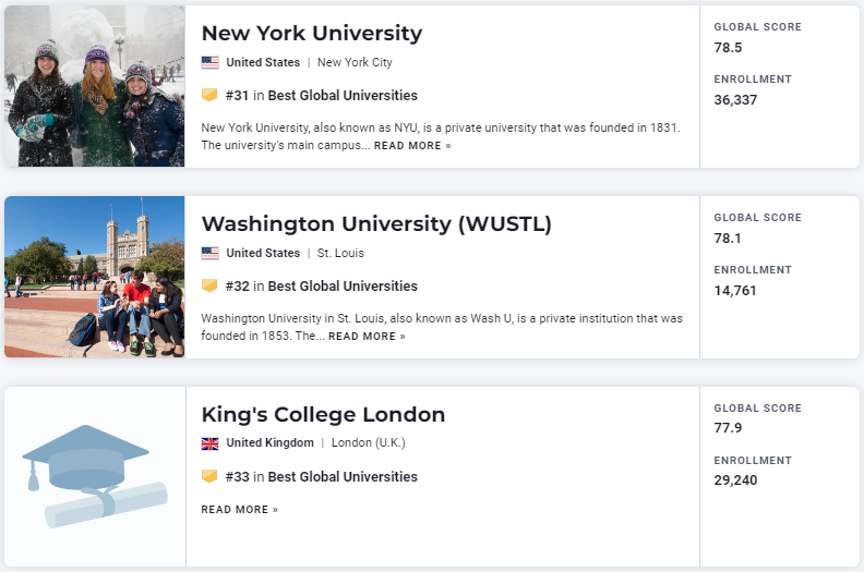 近日,US News 发布世界大学和专业排名。US News世界大学排名是由与《时代周刊》和《新闻周刊》齐名的报纸《美国新闻与世界报道》(US News)发布的综合排名。这是四大排名中唯一来自美国的排名。