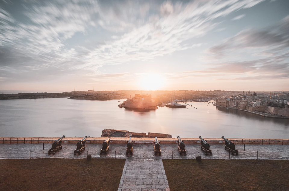 如果你来到马耳他的第一站选择在首都瓦莱塔,推荐你早早起床,前往上巴拉卡花园(Upper Barrakka Garden),眺望着大港的绝美海景,欣赏一轮红日缓缓跃升出海平线,把海面照得一片金光闪耀。