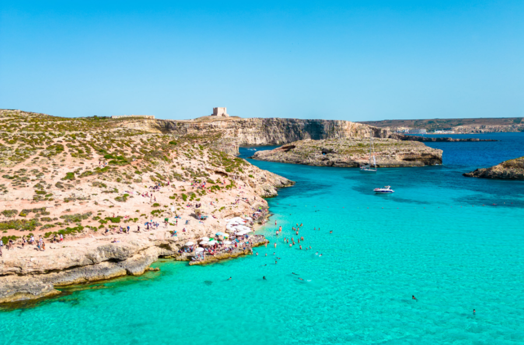 在科米诺岛蓝泻湖(The Blue Lagoon)的白色沙滩,尽情享受一场日光浴;
