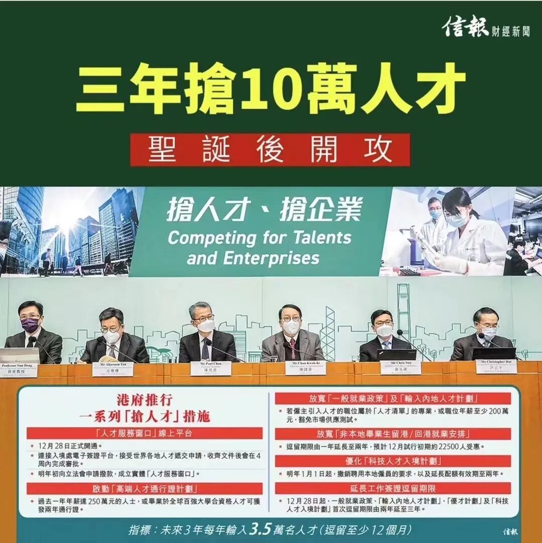 自从香港政府10月份施政报告公布的人才政策,透露出种种利好消息,频频刷爆朋友圈。港府的目标很明确,就是“抢人才”“抢企业”!