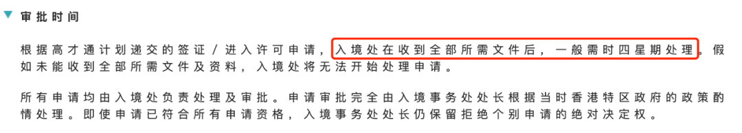 高才通计划的审批速度是一大亮点,官网显示,只要交齐资料后,最快4周就能获得审批。