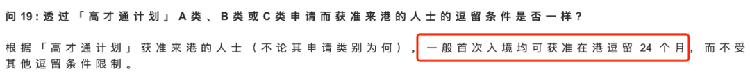 获批「高才通」计划后,一般获得为期2年的签证,不受其他逗留条件限制。