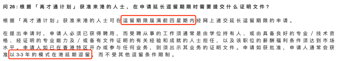 2年后,可在逗留期限满前4周内,在网上申请延长逗留期限。提出延长逗留期限申请时,申请人必须在港就业或开办/参与业务,获批后再获得3+3签证。