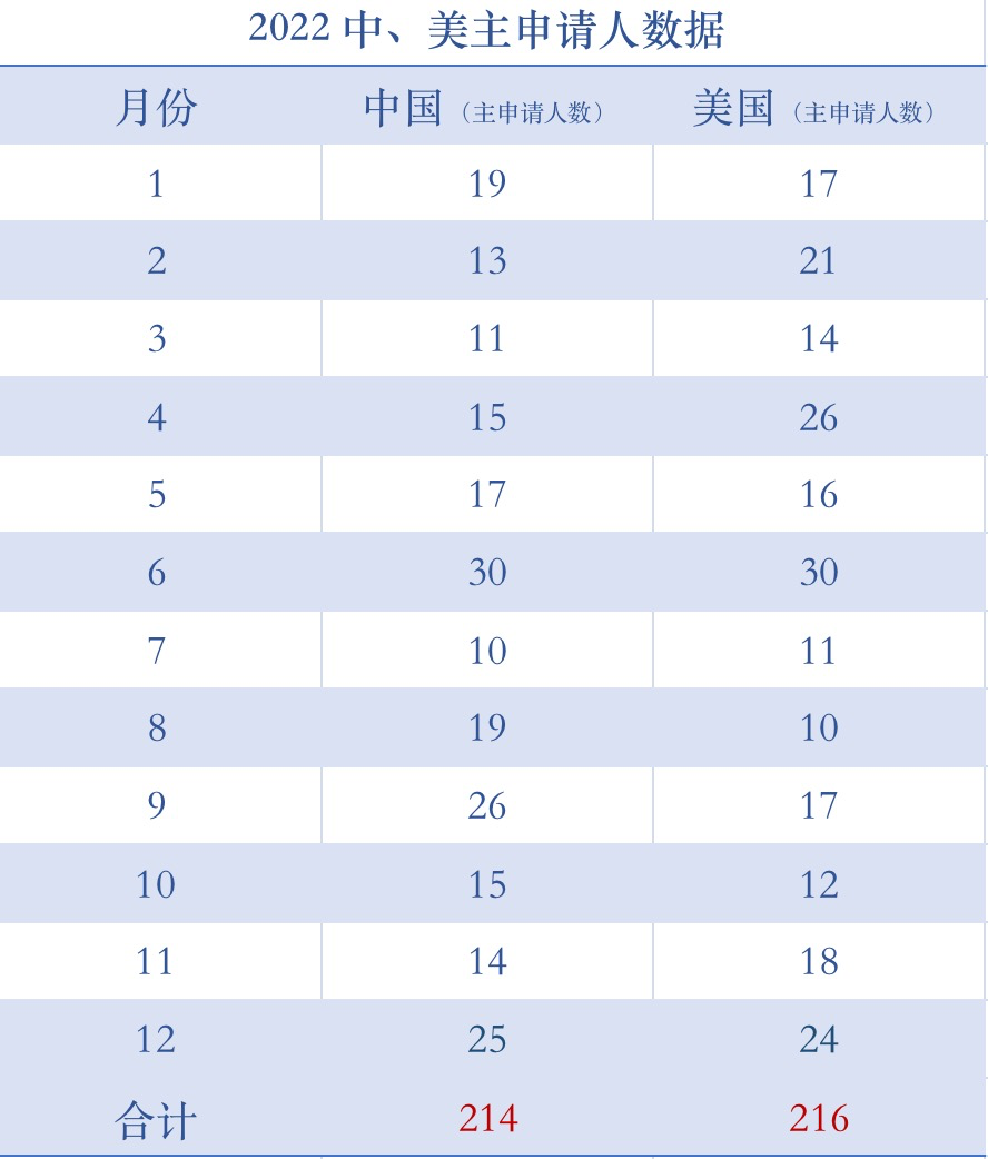 特别是在2022年,从获批的主申请人的数量可以看出,美国申请人和中国申请人是主要的申请来源国。美国甚至在2022年度获批的主申请人数上超越了中国。