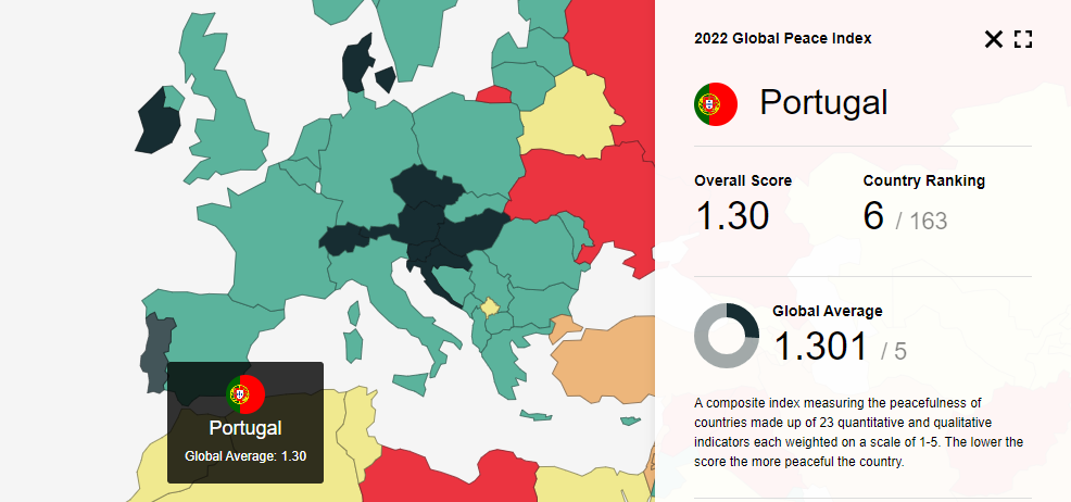 葡萄牙在全球和平指数中排名第六