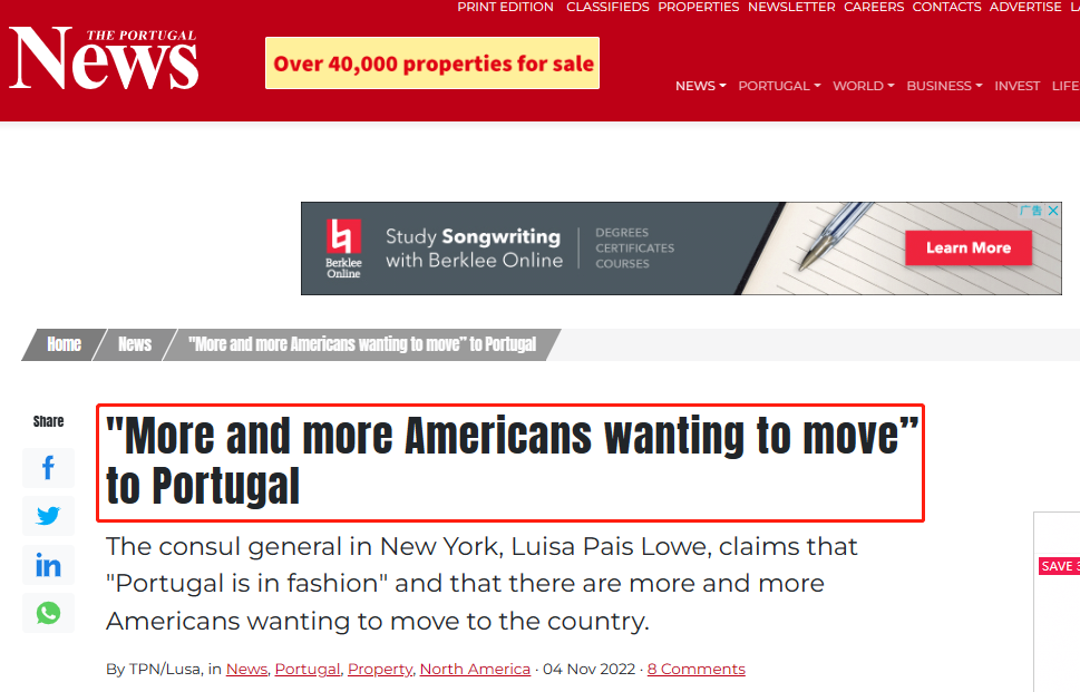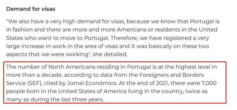据葡萄牙媒体报道,越来越多的美国人前往葡萄牙,有数据表明居住在葡萄牙的北美人数量达到了十多年来的历史新高。截至2021年底,有7000万出生在美国的人生活在葡萄牙,是过去三年的两倍。