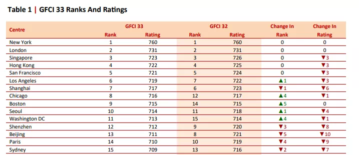 近日,英国智库集团与中国深圳综合开发研究院联合发布第33期《全球金融中心指数(GFCI)》报告。