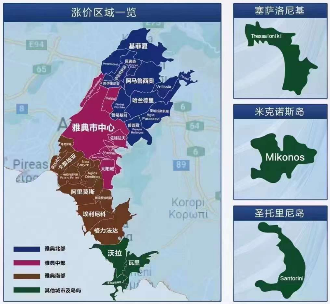 希腊当地时间3月29日消息:2022年12月21日提议的“希腊黄金居留许可”修正案将延期到2023年7月31日执行,此日期之后以下区域只接受50万欧元的投资额: