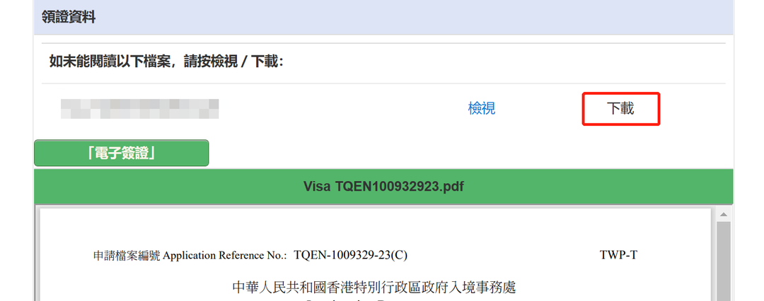 缴费完成后在网页上下载并打印电子签证。
