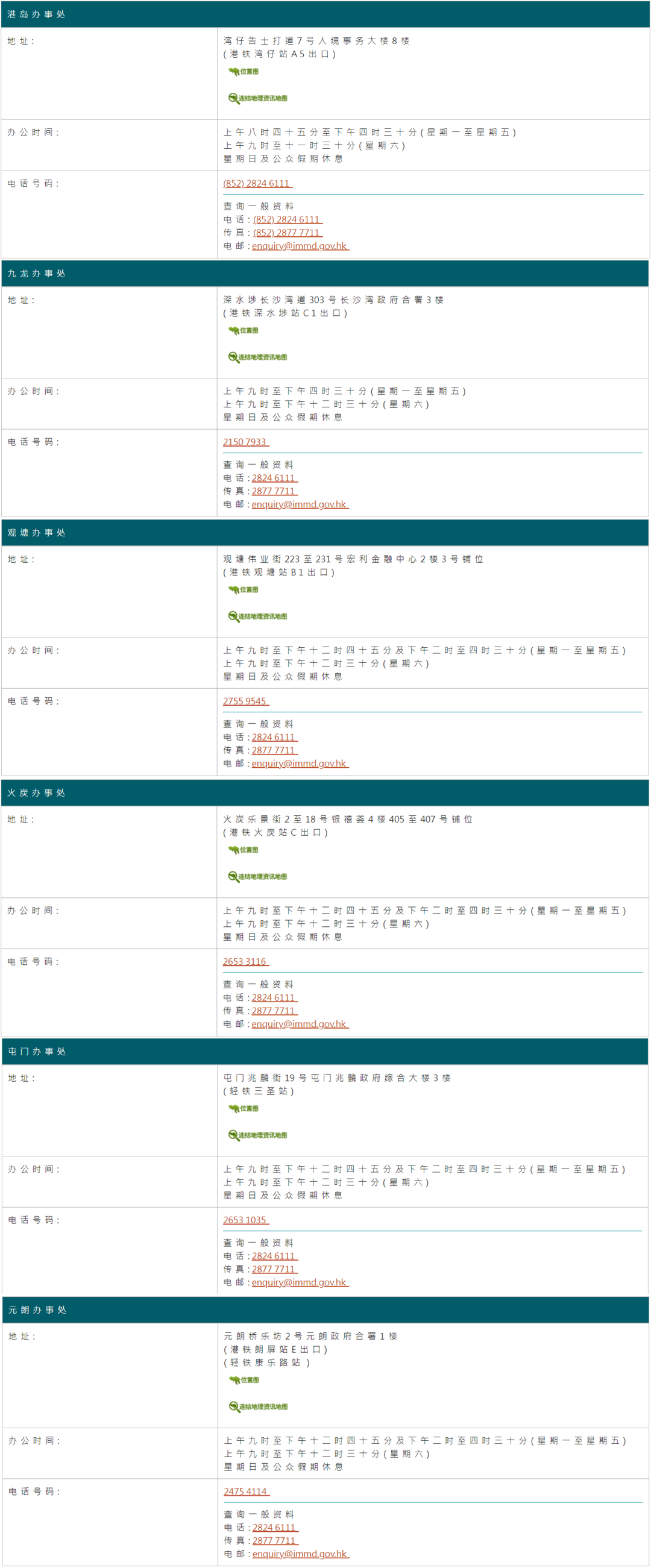 另外香港接受身份证预约的办事处一共有6处,大家可以注意一些他们的地址和办公时间,避免错过预约。