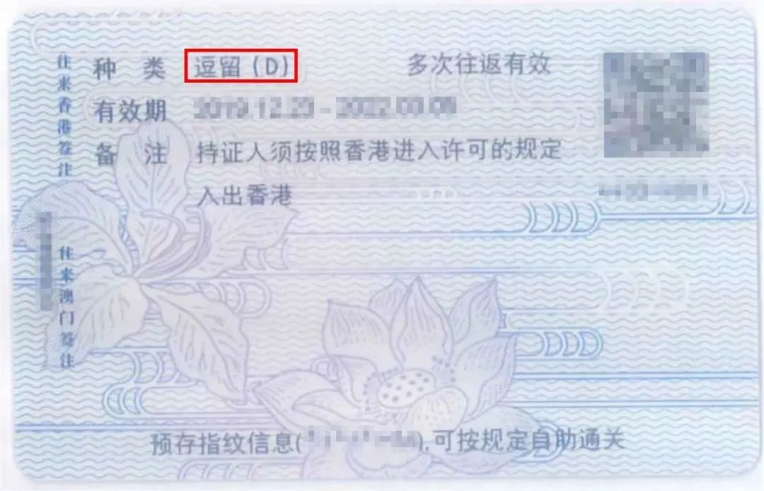 1、逗留签注(D签)的港澳通行证