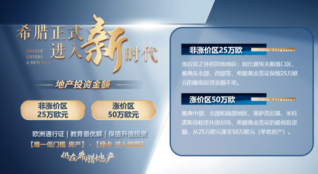 过去的一段时间里,希腊以25万欧元的投资门槛成功吸引了不少外国投资者,他们通过购买希腊的房地产获得了居留权。然而,随着国际形势的变化和对投资移民政策的需求不断演变,希腊政府决定对投资门槛进行升级,将投资金额提高至50万欧元。