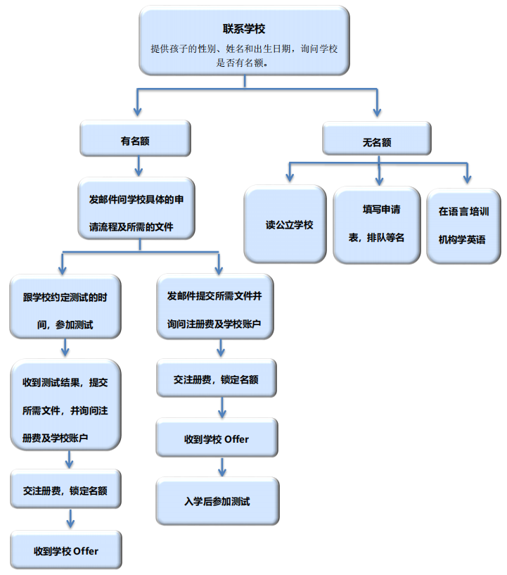 如果学校有名额,就可以发邮件询问学校具体的申请流程与所需的文件。如果没有名额可以选择其他学校或者就读公立学校。