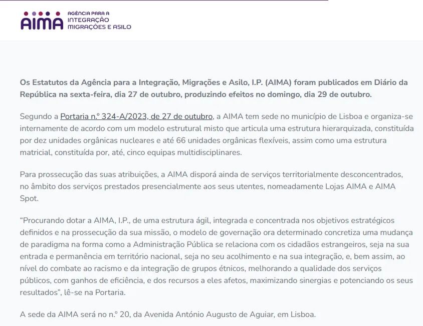 2023年10月29日零时,历时47年的葡萄牙外国人和边境管理局 (Serviço de Estrangeiros e Fronteiras, SEF) 正式被撤销,与此同时融合、移民与庇护局 (Agência para a Integração, Migrações e Asilo, AIMA) 正式开始行使其职能,接替SEF向外国人签发证件。