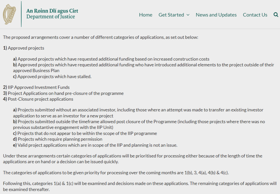 爱尔兰就投资移民计划(IIP)关停后,首次发布了最新审理安排