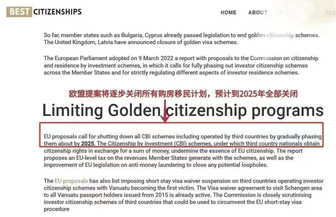 相比涨价,目前市场上对于关停的预测也层出不穷。去年3月,欧洲议会就曾通过了一份报告,敦促欧盟国家在2025年前终止“投资入籍计划”,收紧“黄金签证计划”。