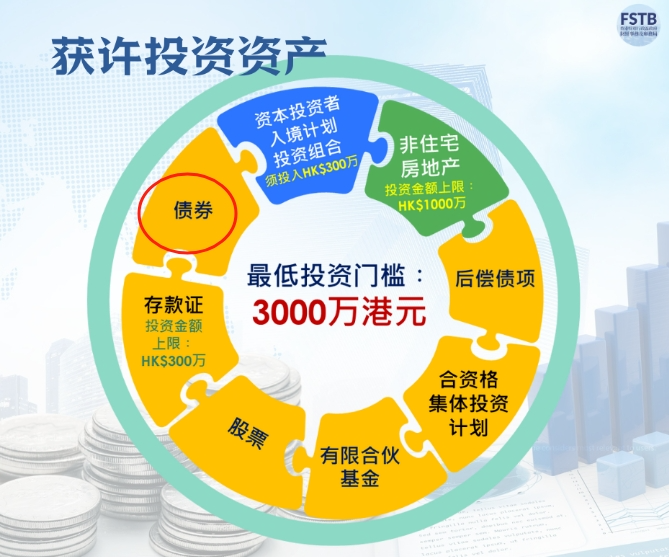 4、投资最少3,000万港元于获许投资资产; 及证明没有不良的入境记录,并符合一般的入境和保安所需的规定。