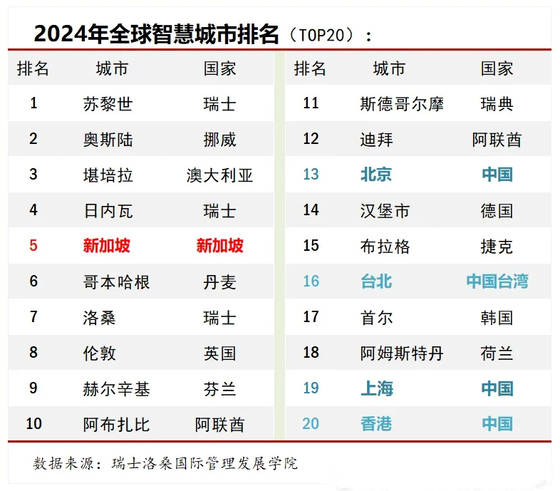 2024年智慧城市排名:新加坡唯一名列前十的亚洲城市!
