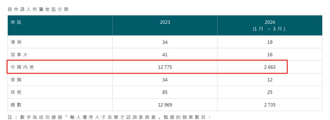 获批总数2735,其中来自内地的有2663宗,占比97.36%,所以可以看出来,优才计划基本上引进的还是内地的优秀人才。