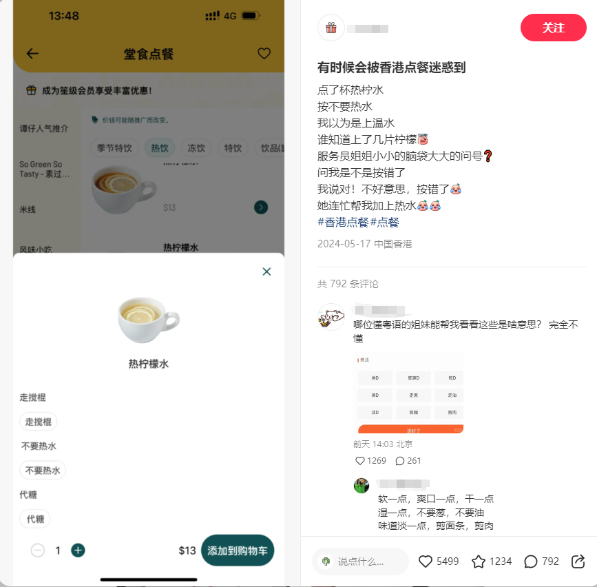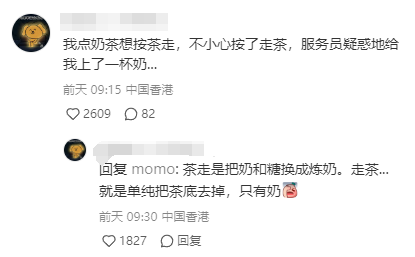 社交媒体上,不少内地游客分享了自己在香港茶餐厅点菜的有趣经历:有网友点了一份「热0茶」,但不小心勾选了「不要热水」,结果端上来的是一份柠檬...