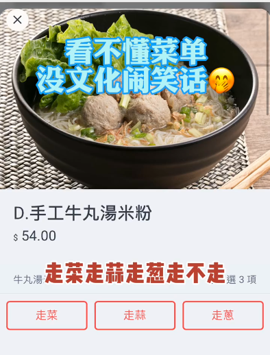 有网友点了一碗云吞面,由于不太了解香港口味,选择了走菜、走葱、走蒜。