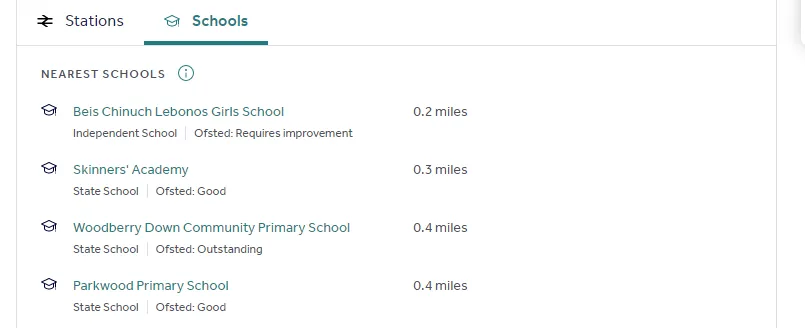 哈克尼区本身优质学区就很多,Woodberry Down更是哈克尼区好学区的典范,周围有12所幼儿园&托儿所,52所公立小学,16所公立中学,28所私立学校以及4所特殊学校。只需步行5分钟就能到达英国顶级私立学校——伦敦金融城女校(City of London School for Girls),常年位于伦敦私校排名前十。