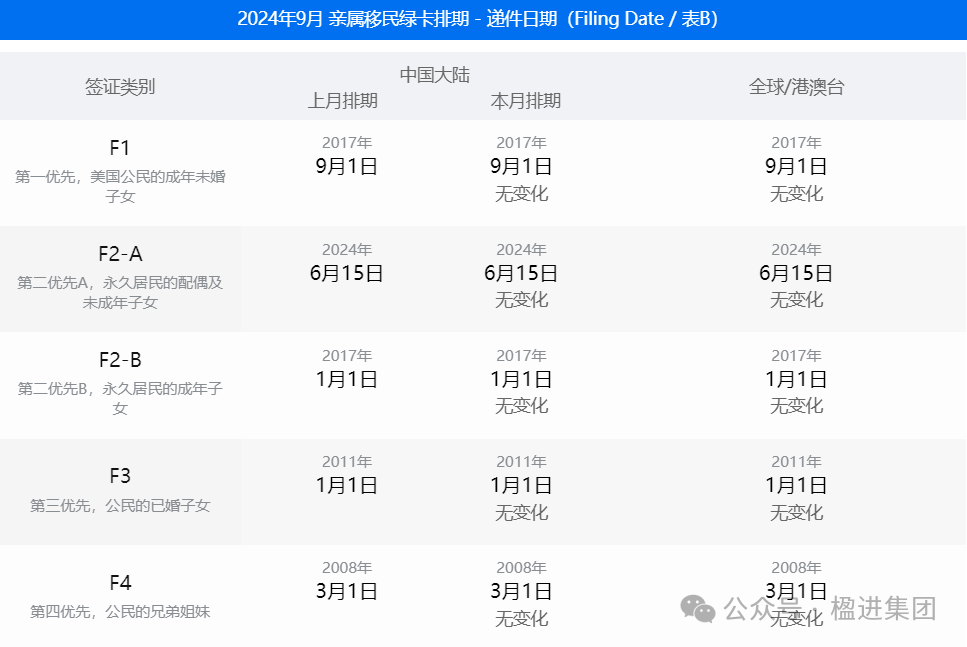 2024年9月美国移民签证排期表公布,24财年排期收官~