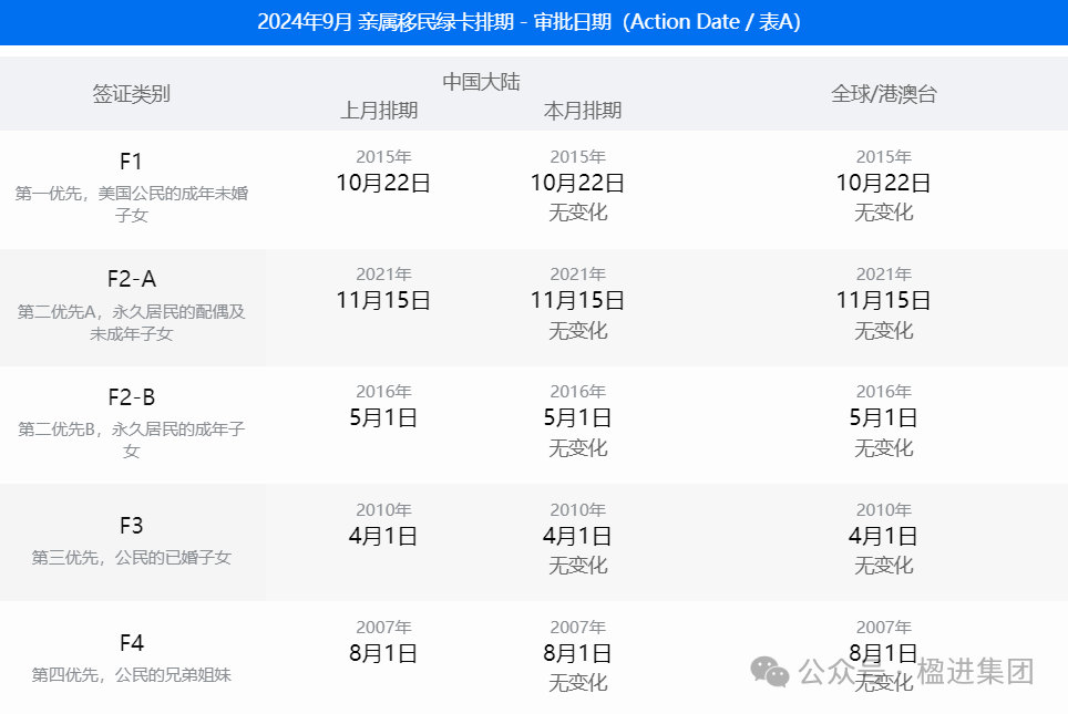 1、亲属移民表A无变化