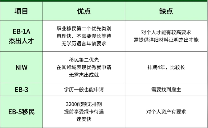 除此之外,美国还提供了多种适合不同背景申请者的移民路径。