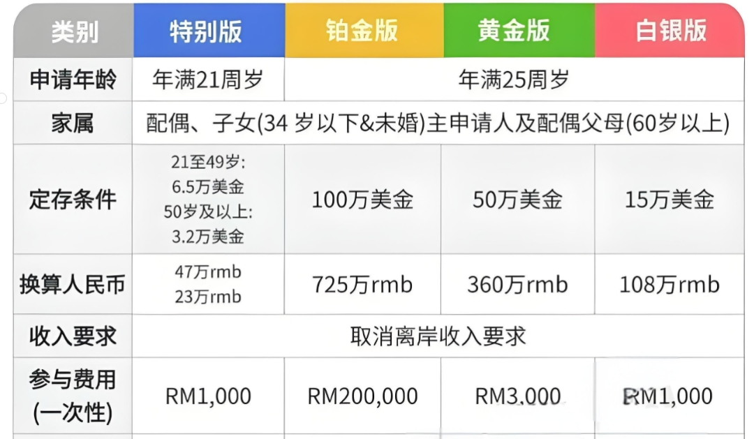 从马来西亚政府近期发布的第二家园(MM2H)四大组别的申请要求就可看出,其对于这个特别经济组的特别关照(下图中的“特别版”):