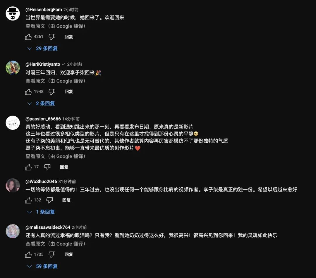 第一条视频发布后,海外平台评论数在10分钟内即突破5000条,截至目前,评论数已超1.5万,海外网友们纷纷表示,李子柒是不可替代的存在,她的视频如同一股清流,让人们在快节奏的生活中找到了片刻的宁静与美好。
