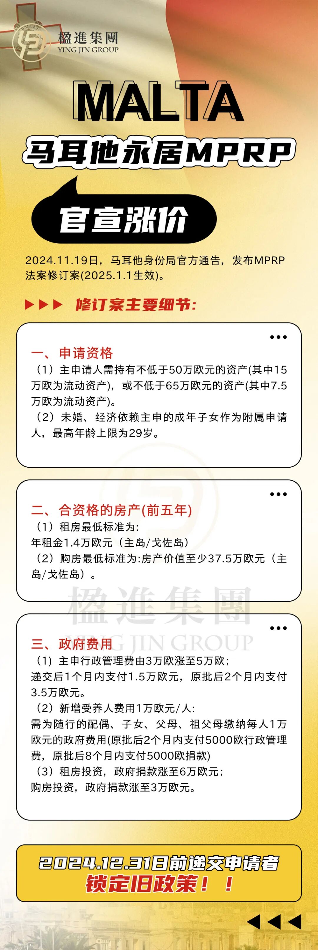 马耳他移民管理局在11月19日对现有的永久居留项目(MPRP)进行了全面且深入的更新,这一动态在移民领域内掀起了巨大的波澜。